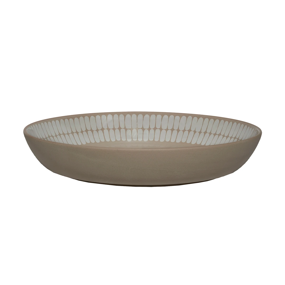 This Marimekko Alku pasta bowl will deliver your next delicious meal in style. The sturdy bowl is made of brown stoneware in an earthy brown Alku (beginning) pattern representing seeds ready to burst into lush and vibrant life. This past bowl is great for special occasions or every day use as it’s dishwasher, oven, microwave, and freezer safe.