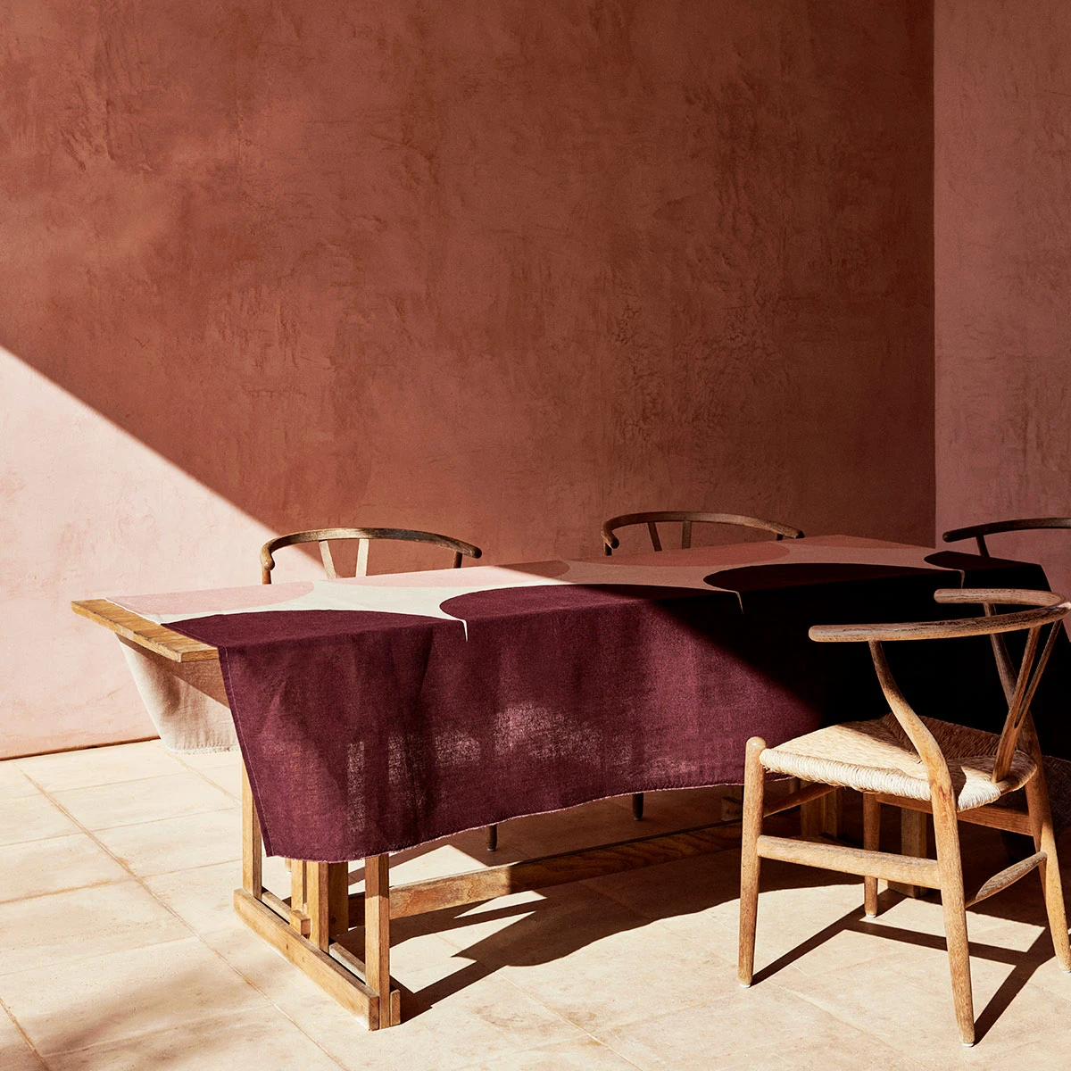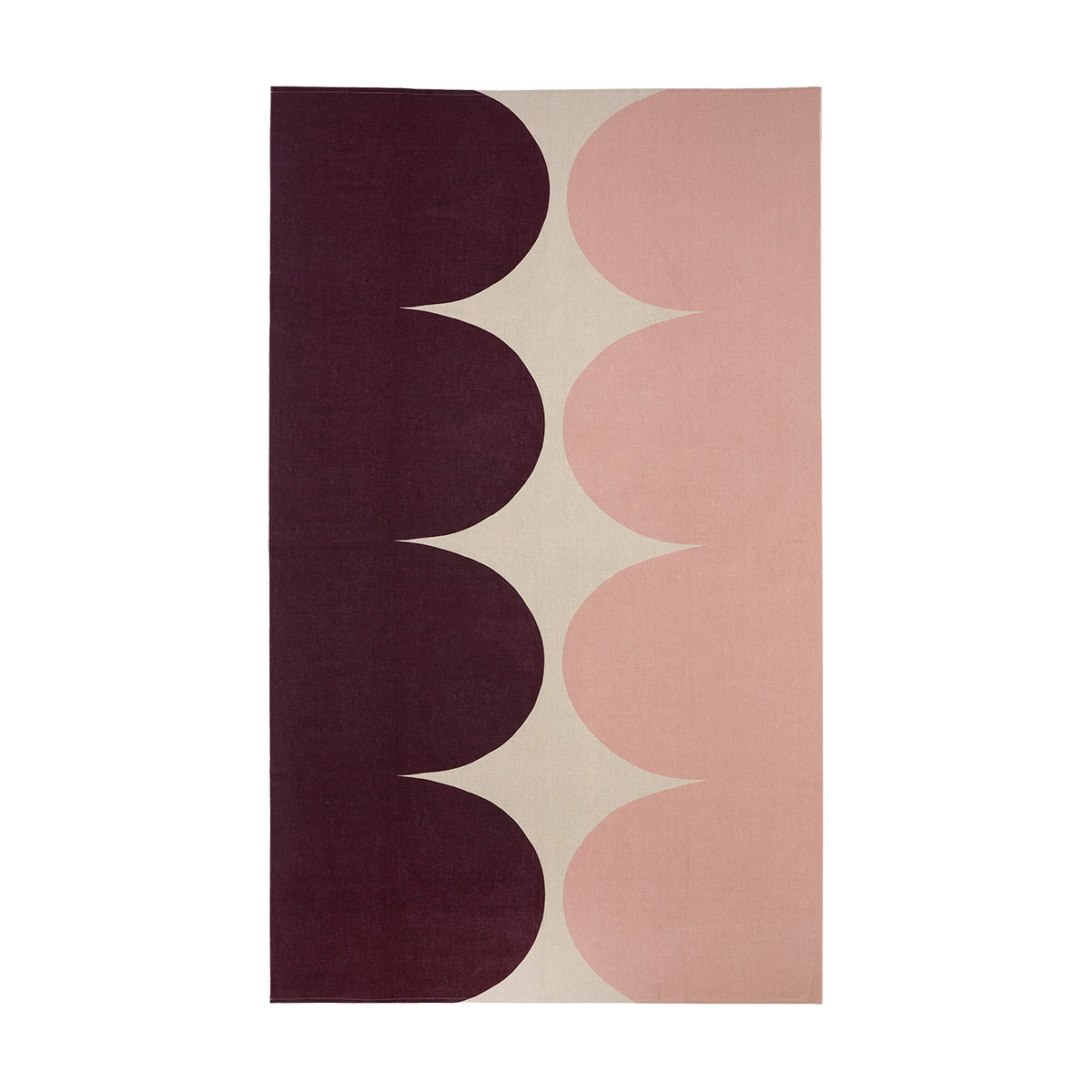 The Härkä (bull) is one of Maija Isola’s geometric designs from the 1960s in which we can see her exploring the constructivist movement that was rising in the Finnish art scene at the time. This elegant 100% linen tablecloth comes in a burgundy, blush pink, and tan colorway which creates a warm and welcoming feeling that will elevate your dining experience.