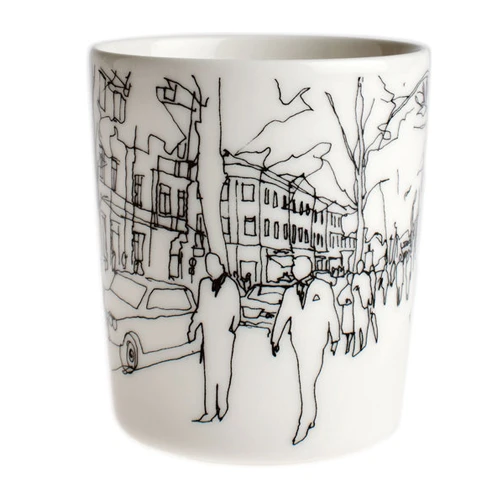 The Marimekko Hetkiä latte mug is a coffee mug without a handle inspired by Maija Louekari’s Hetkiä “Moments” textile design. This unique ceramic stoneware mug has black illustrative line drawings celebrating a moment in time.