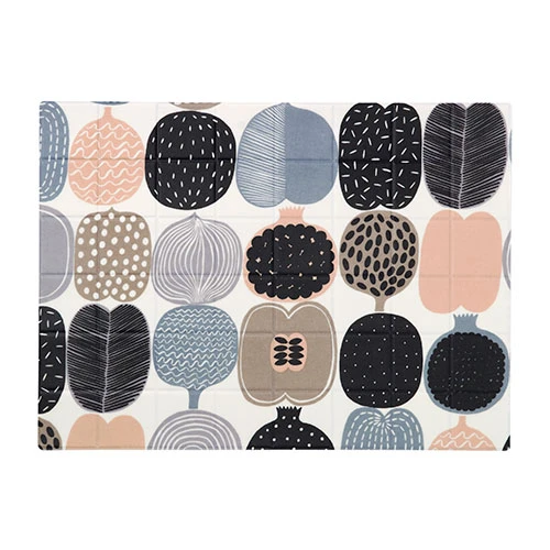 Apples, peppers and pomegranates ahoy! The Marimekko Kompotti PVC placemat entertains the whole garden on this produce-centered print. The soft hues of peach, light blue, black and white create a refined color palette that calms the eye while creating conversation. The soft cotton placemat is gently coated in a layer of PVC to create a surface that resists accidental spills and splatters as it can be easily wiped clean with a damp cloth. Designed by sanguine Finnish designer Aino-Maija Metsola, her cheery personality is transferred into the newest print, Kompotti, and its beauty easily enhances any meal.