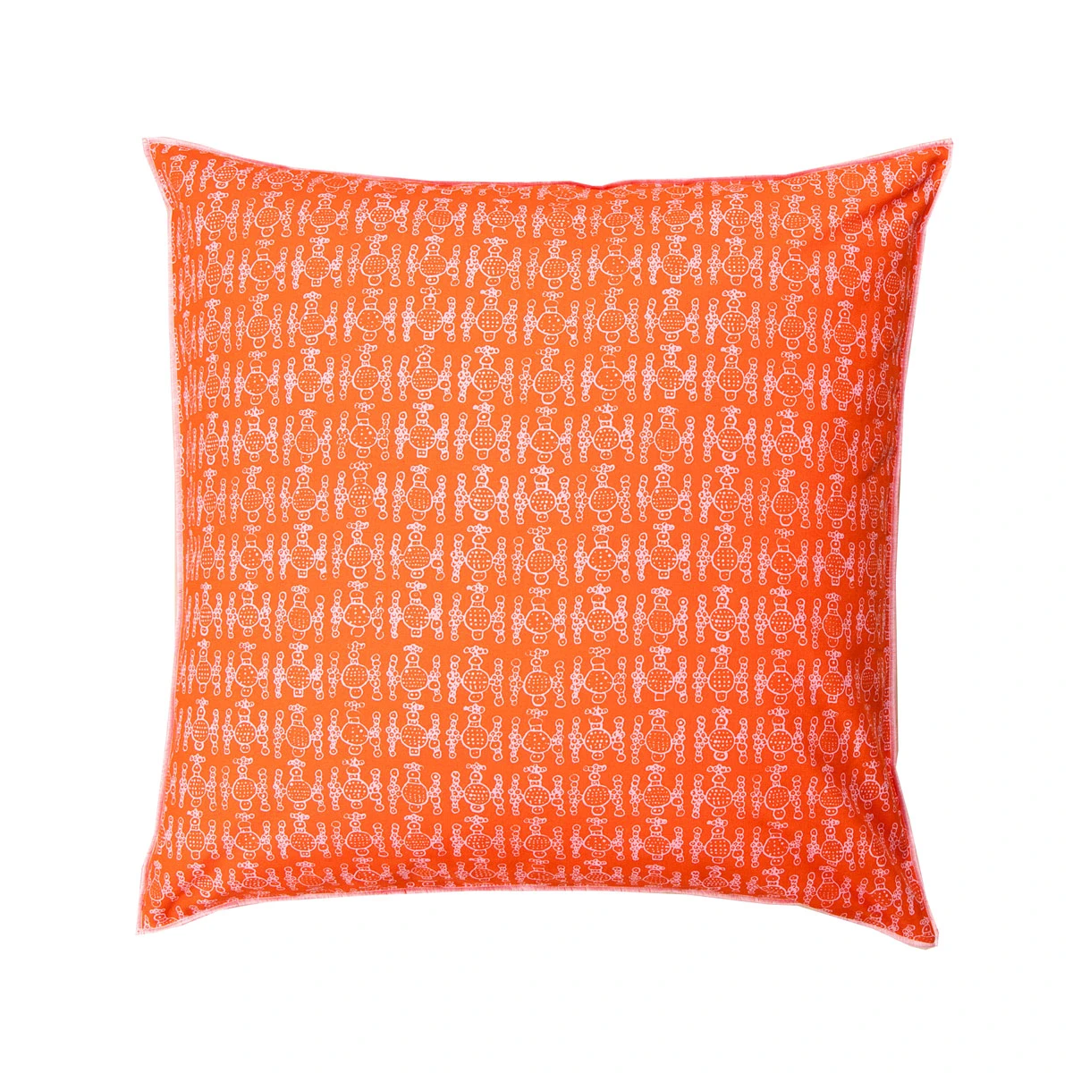 Add a punch of color and print to a lifeless sitting area. The Marimekko Kuukuna Orange Throw Pillow’s warm hues of orange and pale pink radiate energetic warmth. The contrast stitching and discreet side zipper are beautiful details. The 100% cotton cushion cover is machine washable, and a complimentary hypoallergic insert is included.