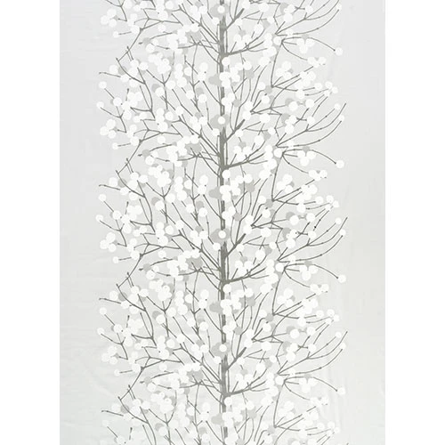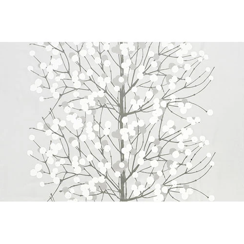 Luxurious, lustrous and luminous; all attempt to describe the Marimekko Lumimarja Silver/White Sateen Fabric, but words and images do not do its beauty justice. The hints of sheen and shimmer in the silver branches and berries need to be seen in person to truly be appreciated. Made from 100% cotton sateen, this high-quality fabric is still printed in Finland where Erja Hirvi’s “Snowberry” design was born. The wintry and icy appeal to this fabric makes it perfect for the cooler months, but the light colors and delicate pattern can carry it throughout seasons. Whether it’s made into a wall hanging, table linen or curtains, this radiant design will add a special sparkle, both literally and figuratively, to its surroundings.