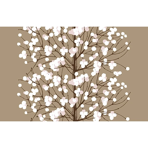 Erja Hirvi originally created the Lumimarja (Snowberry) design by scanning the bush’s actual branches, a meticulous method that shows in the truthful form of every single twig. A central stem climbs up a rich taupe sky, presenting succulent berries in shades of soft blush and bright white as it ascends. Still made at Marimekko’s factory in Finland, this luxurious fabric is printed on 100% cotton sateen to give it a softer feel and subtle sheen. Use the Marimekko Lumimarja Taupe/Blush Sateen Fabric to upholster a headboard, create a wall hanging or fashion a window panel; wherever this delicate yet dramatic design ends up, it will leave a lasting impression.