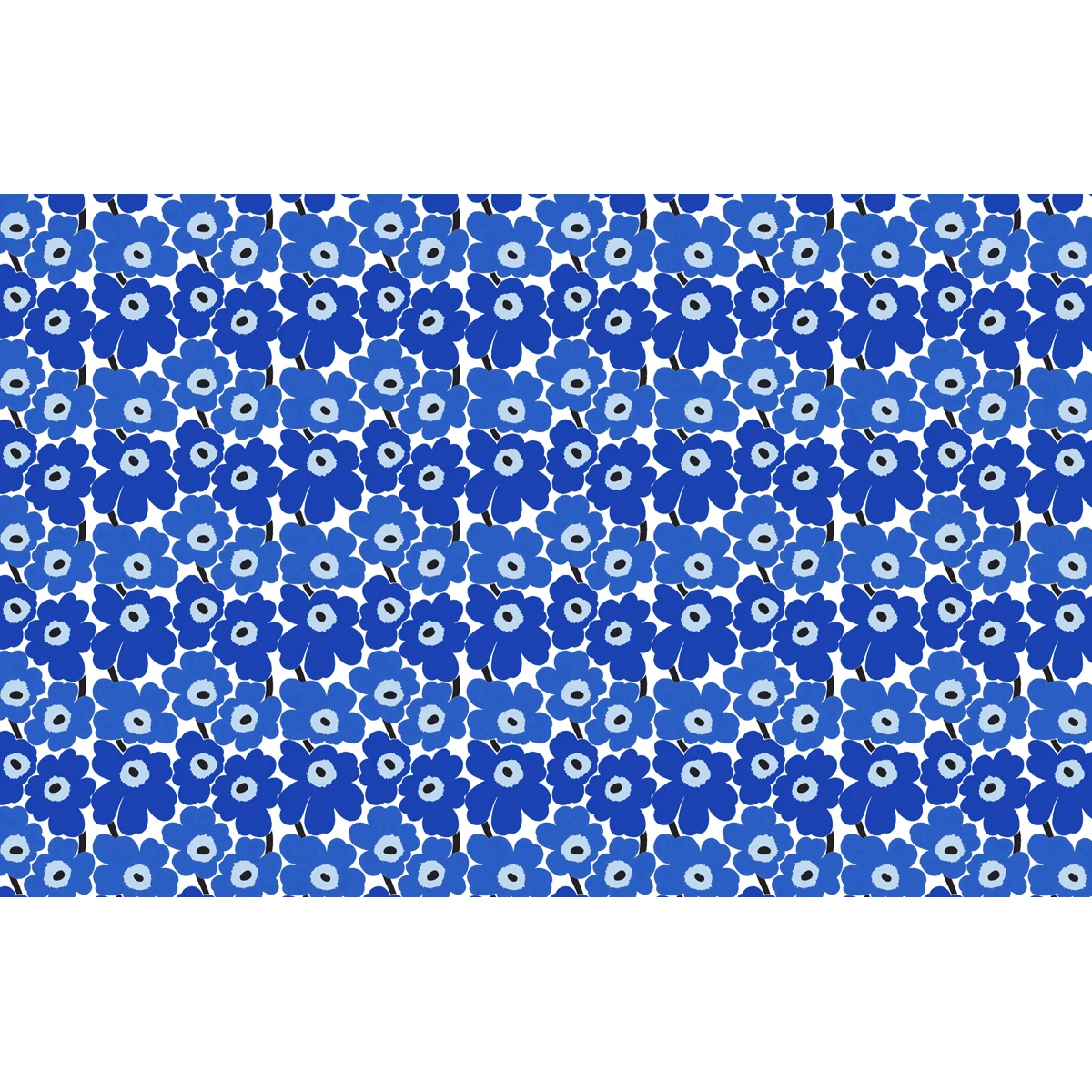 Maija Isola’s iconic Unikko (Poppy) print in miniature shows that small can still be bold. Marimekko Mini Unikko is just right for smaller scale productions such as pillows, bedding or skirts. Printed in Finland on 100% cotton in an eye-catching blue, this fabric is easy to work with and machine washable.