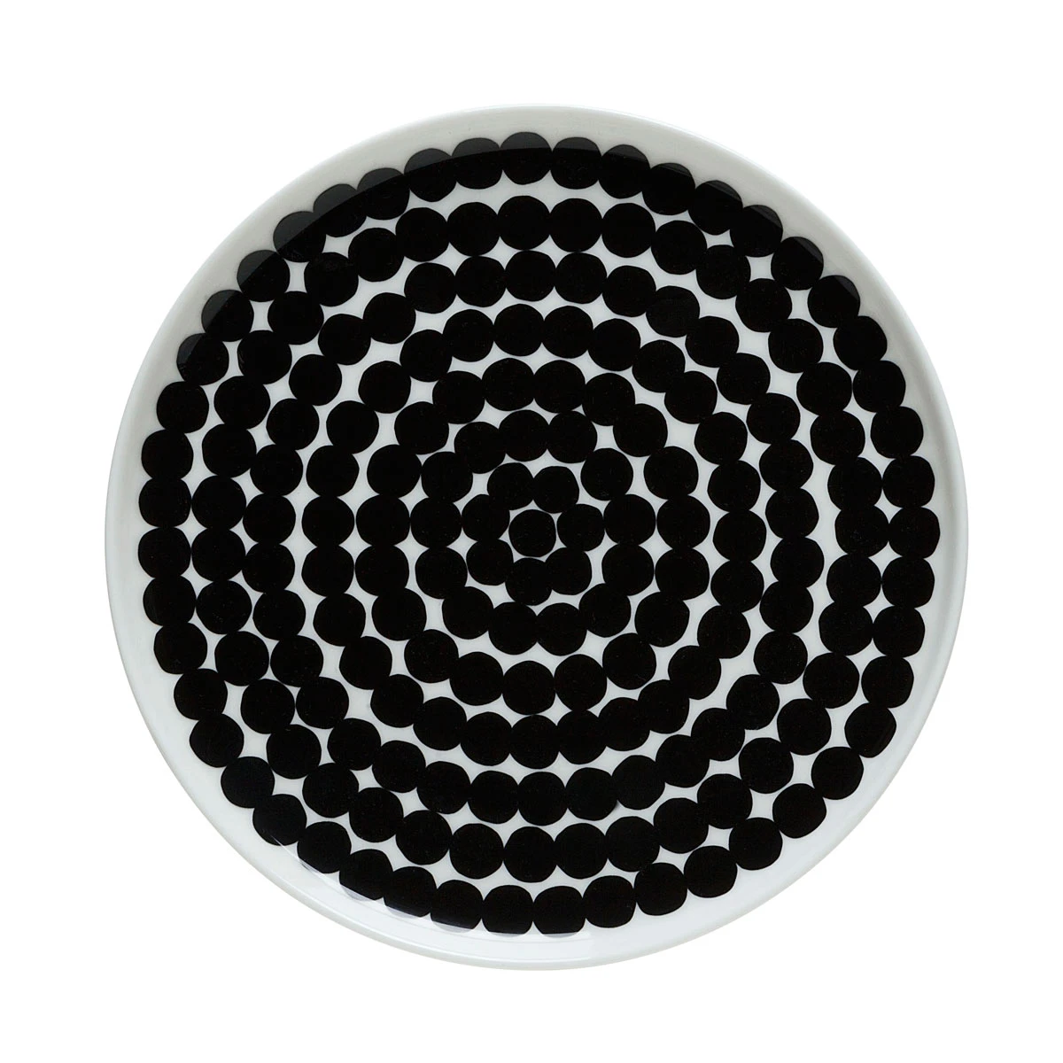 The Rasymatto Salad Plate is a part of the Oiva dinnerware collection by Marimekko. This black and white design by Maija Louekari is a modern interpretation of the traditional “Rag Rug” (Rasymatto) textiles. Made from vitreous porcelain, it is conveniently microwave, oven, freezer and dishwasher safe.