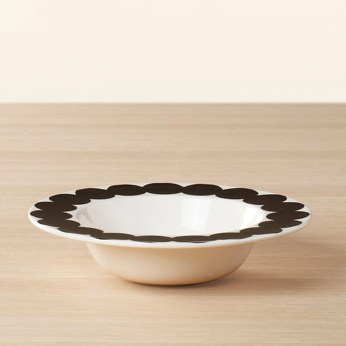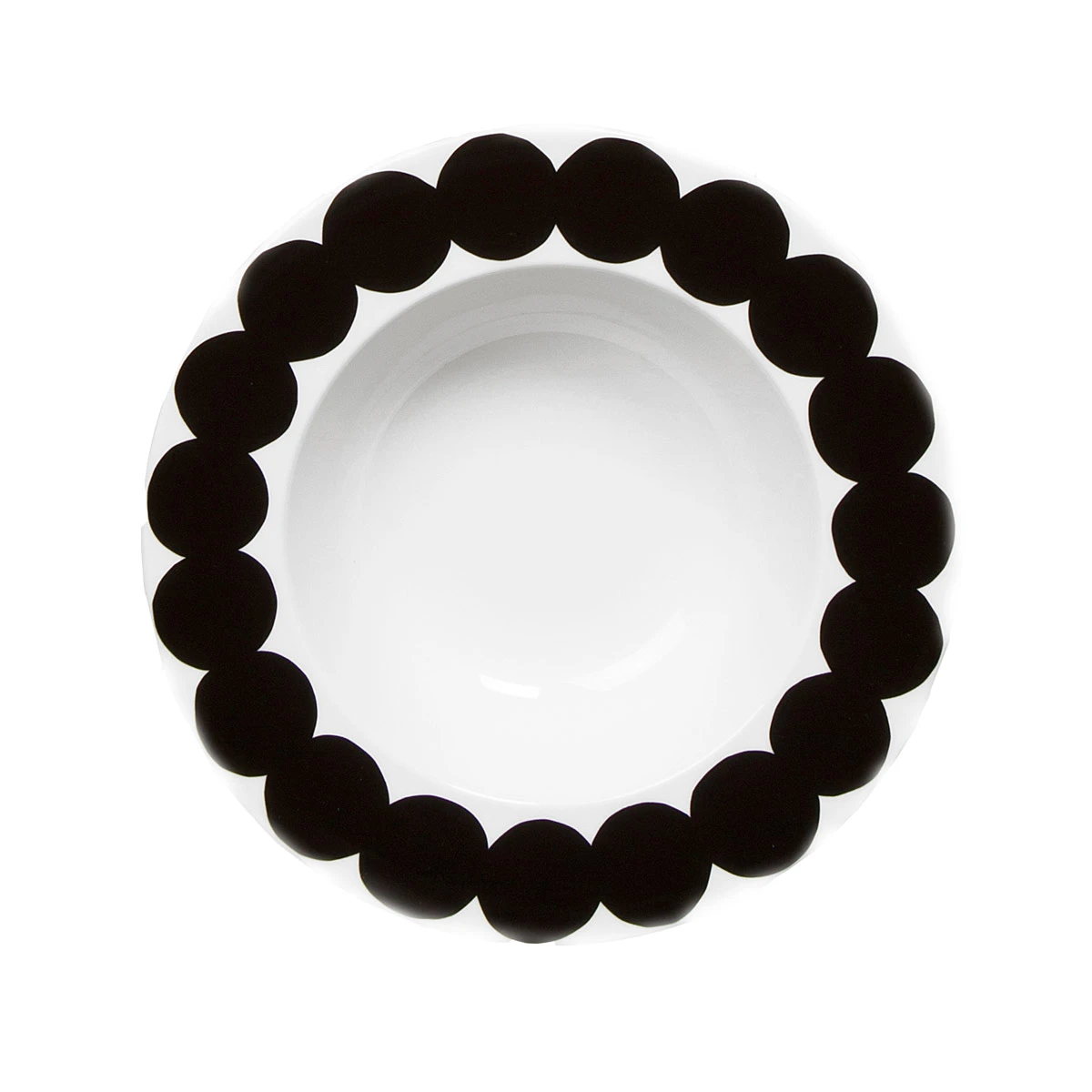 Heat up your suppertime presentation with the Marimekko Rasymatto Soup Bowl. Maija Louekari’s dots make this soup bowl stand out with the beautiful retro-inspired Räsymatto print. This wide-rimmed bowl in just the right size and shape for soup, cereal, or pasta. Made of Oiva’s durable glazed ceramic, this bowl is conveniently dishwasher, oven, microwave, and freezer safe.