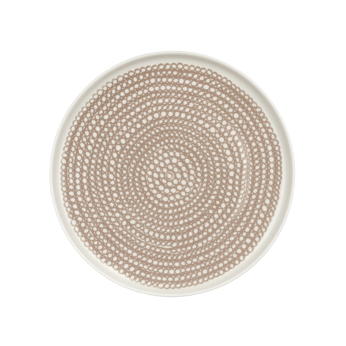 The Siirtolapuutarha salad plate is a part of the Oiva dinnerware collection by Marimekko. This beige and white drawing by Maija Louekari could be interpreted as a piece of corn or the center of a flower. However you interpret it, this abstract design brings a fun and modern look to your dinnerware.