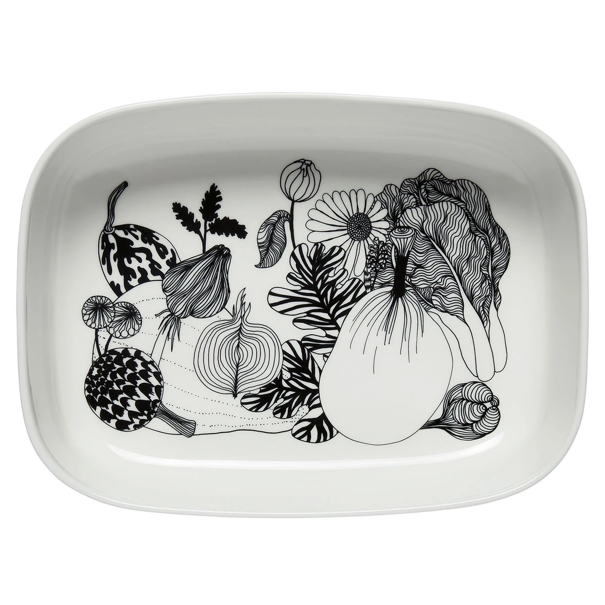 Feed a feast to family and friends this season with this large Marimekko casserole dish. Generously sized, it’s perfect for large portions of side dishes during the holidays and beyond. The dish is crafted from microwave, oven, freezer, and dishwasher-safe white stoneware making prep work and clean up easy during special gatherings or everyday dining. Adorned with Maija Louekari’s Siirtolapuutarha pattern, it also brings beauty to the spread; each time a helping is taken, more of the stunning design will be revealed. Inspired by rooftop gardens, it depicts a bounty of vegetation and veggies, from flowers to onions. Perhaps the fresh foods from this pretty pattern will inspire new recipes to be passed around the table for years to come.