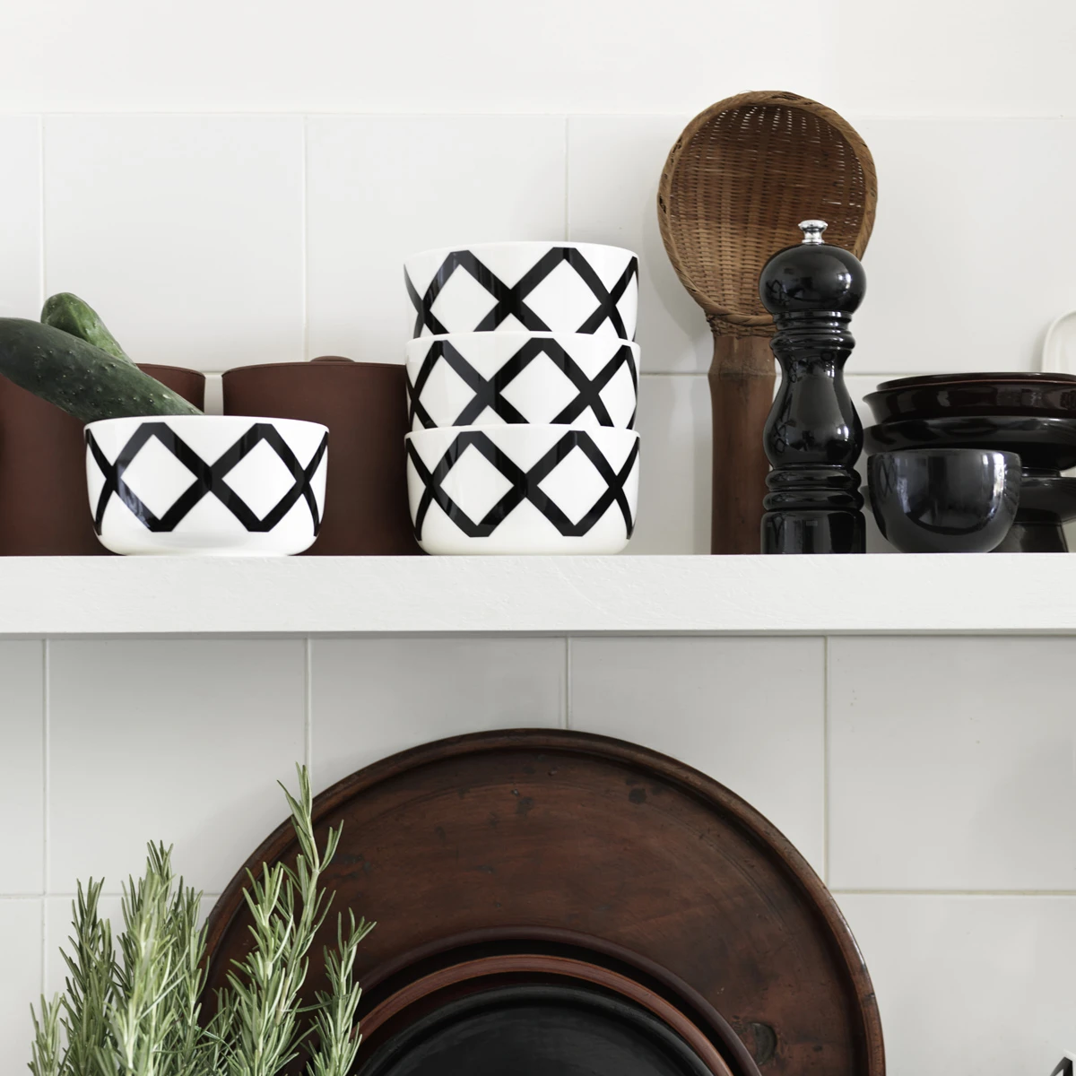 Carina Seth-Anderson’s Spaljé print is a cheerful and chic pattern that is sure to freshen up your table setting. Beautifully designed with clean black lines along the sides of the bowl, this Marimekko Spaljé Soup/Cereal Bowl is certain to have you worry free with its microwave, freezer, and dishwasher safe capabilities. Now, you can enjoy the convenience in serving hot warm soup with this durable ceramic porcelain bowl.