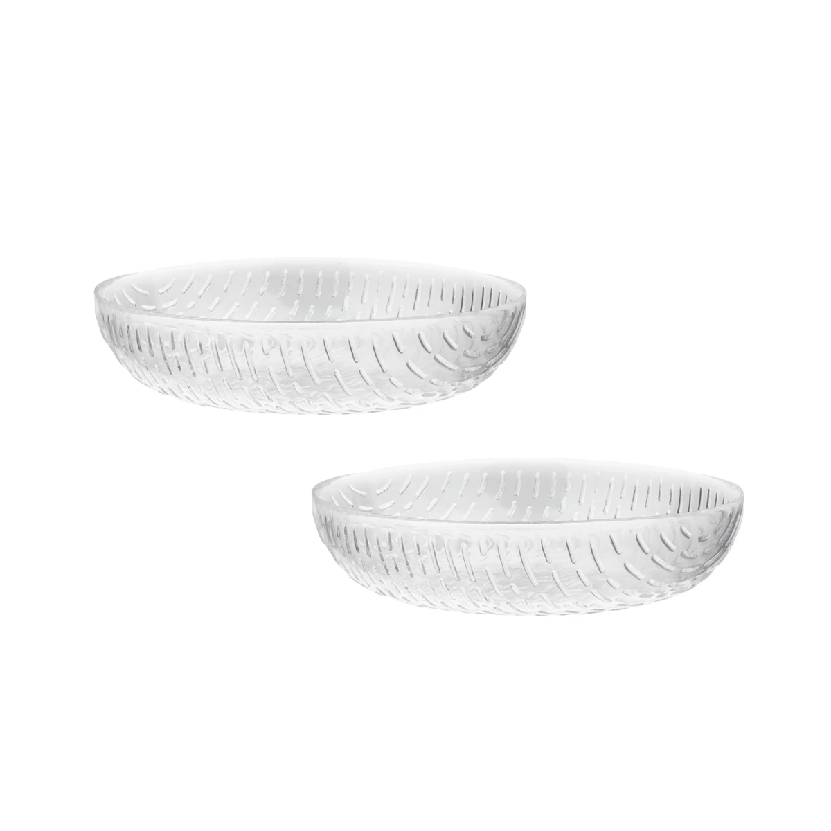 The Marimekko Syksy (Autumn) glass series is designed by Matti Klenell, which explores the nature, weather and shapes of Autumn rain showers. From the gentle fall drizzles to powerful downpours, the organic and textured glass surfaces encapsulate the phenomena of the season. Use these stunning, small clear bowls for dips, snacks or assorted nuts, and pair them with the matching clear Syksy glassware for a polished set. The glass is mouthblown, and slight variations from the image and minor signs of craftsmanship may occur. The plate set is packaged in a Marimekko logo pattern box.