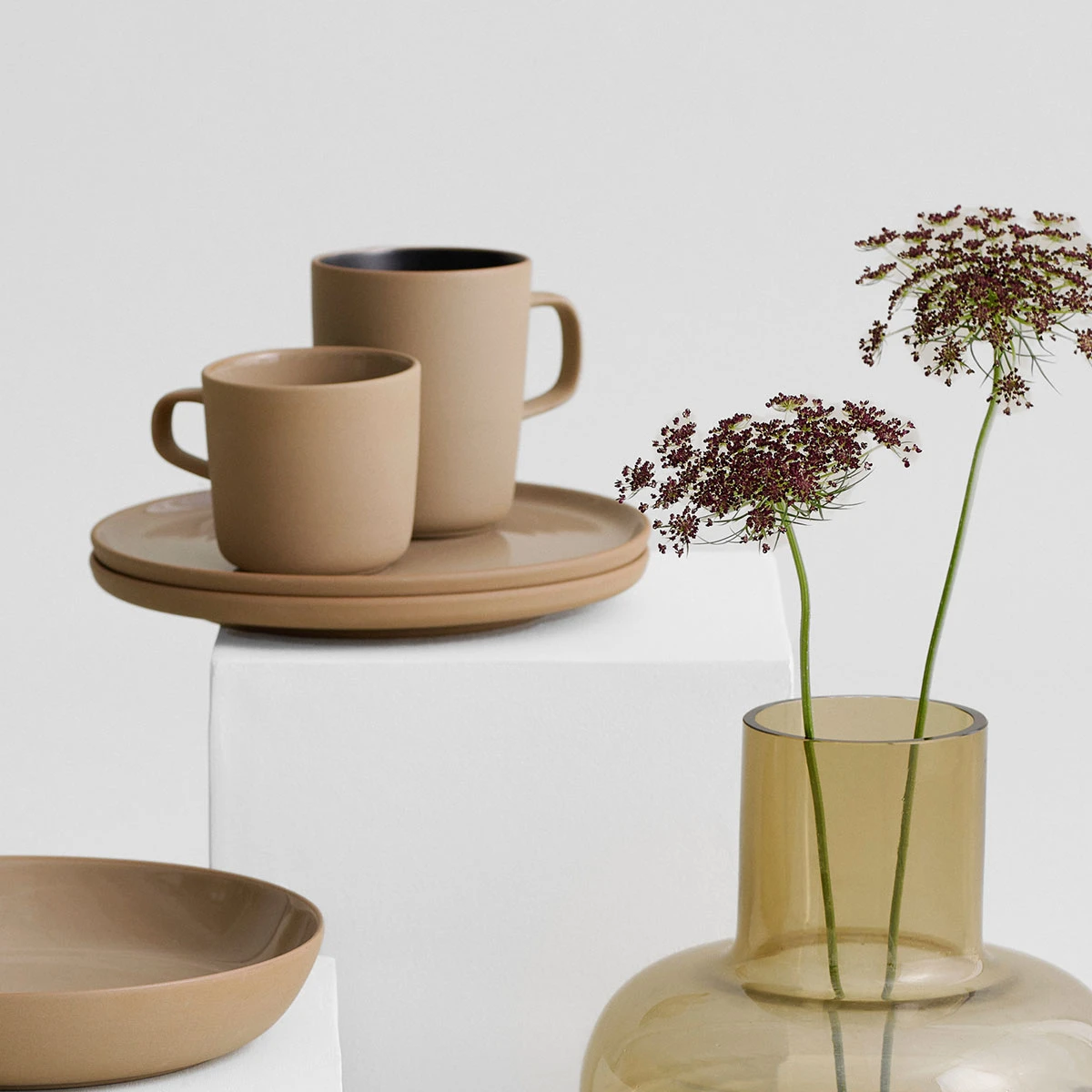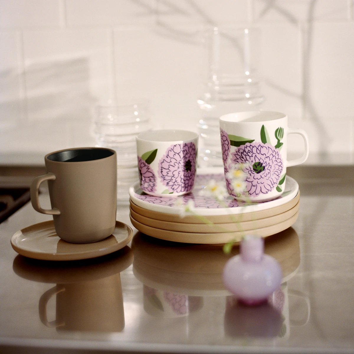 Humbly handsome. Unglazed, the exterior of this Marimekko plate is left naked to reveal its rough, raw beauty. The face has a clear glaze for contrast in finish but remains cohesiveness in color. Terra brown stoneware has naturally occurring variations, making each a charming and unique piece of art. Like the white stoneware of other Marimekko Oiva dinnerware, this plate is microwave, oven, freezer, and dishwasher safe for daily use. It’s perfect for salads, sandwiches, and more.