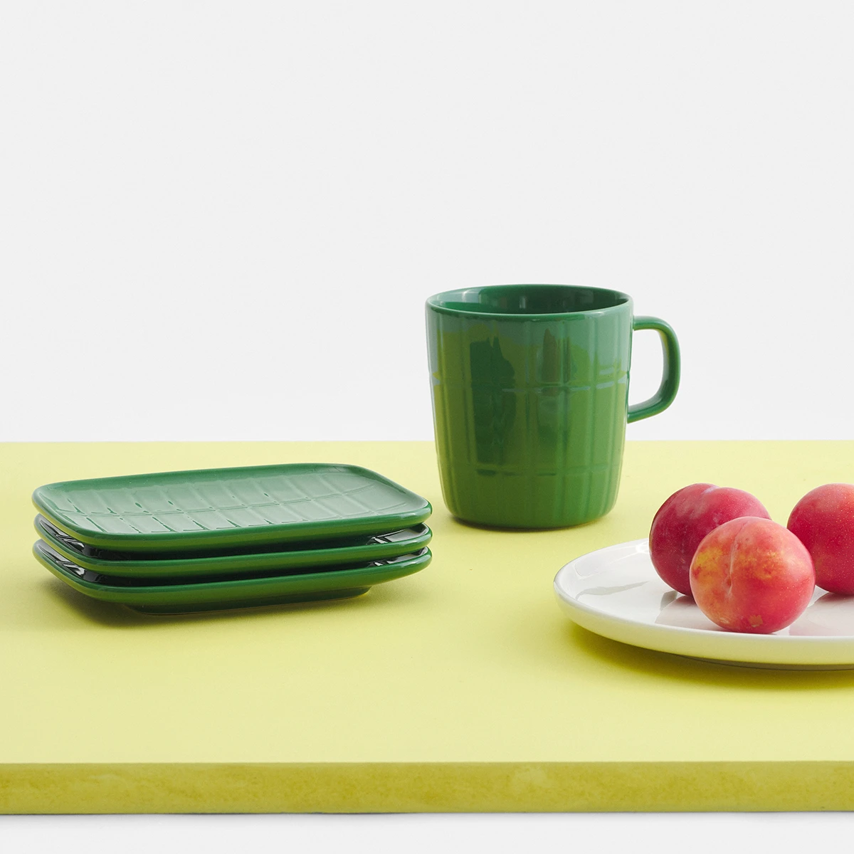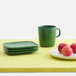 This Marimekko small plate will be the perfect piece for your snacks, appetizers, deserts, or you might even use it as a stand alone decorative piece. Whichever way, it brings style and color to any space. Engraved into this durable stoneware is the Tiiliskivi (brick) pattern in a beautiful deep, dark green color, designed by Marimekko’s founder herself, Armi Ratia. She aims to reflect the simple beauty of everyday life through her design, perfectly encapsulating the delight and tastiness of our everyday delicacies. This Marimekko small plate will pair beautifully with the matching Tiiliskivi large mug to create a cohesive dining set.