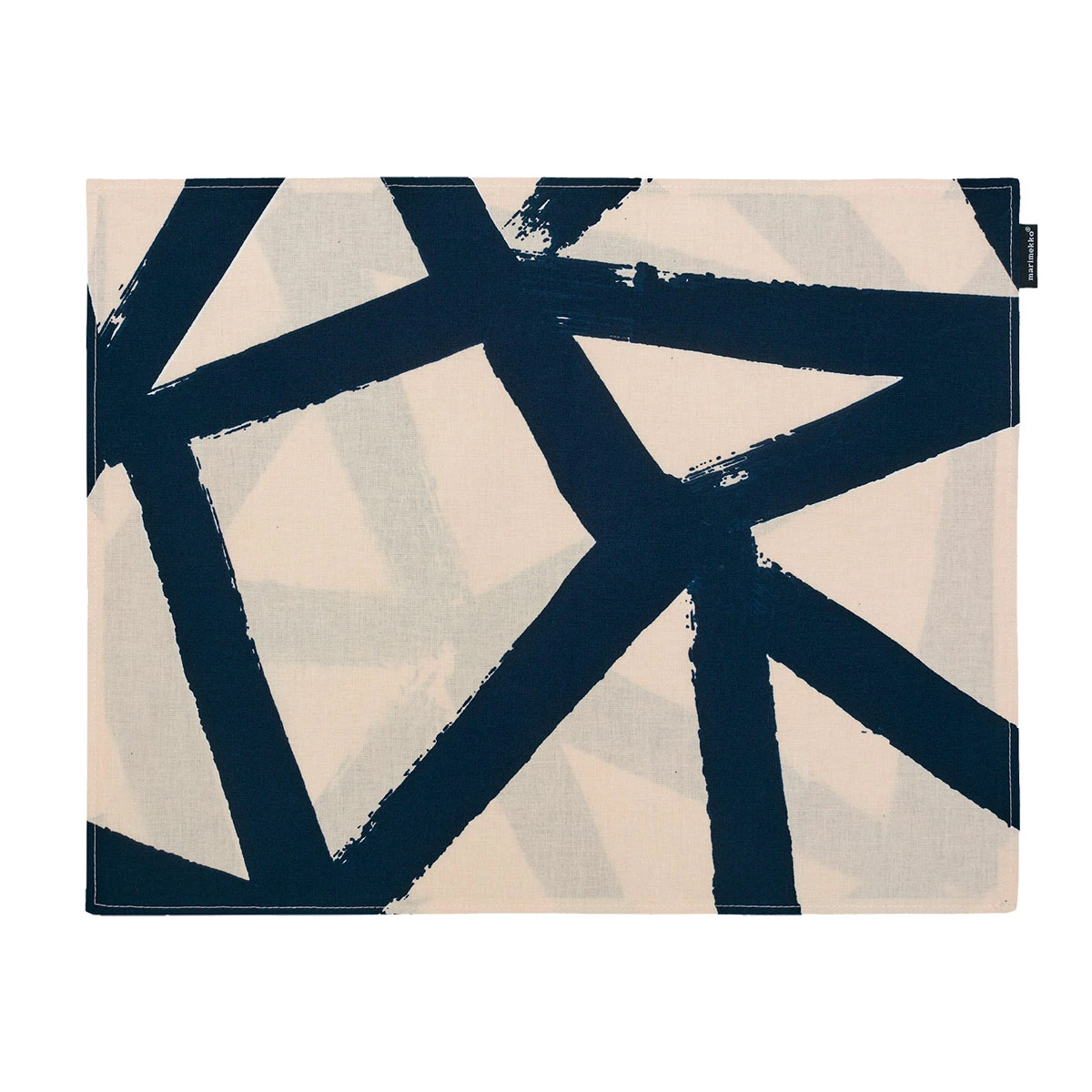 Set your table in style with this clean-lined-yet abstract Marimekko placemat. Decorating this placemat is designer Fujiwo Ishimoto’s 1980 Ukkospilvi (thundercloud) pattern in peach and dark blue tones, resembling that of a geometric grid rhythm. The original Marimekko design is hand-painted with relaxed and effortless brushstrokes, drawing inspiration from the movements and changes in the weather. Its unique print and peach and blue contrast make for an inviting dining atmosphere. This Marimekko Ukkospilvi placemat is made of 100% cotton and has an acrylic coating, which makes it extremely easy to keep clean.