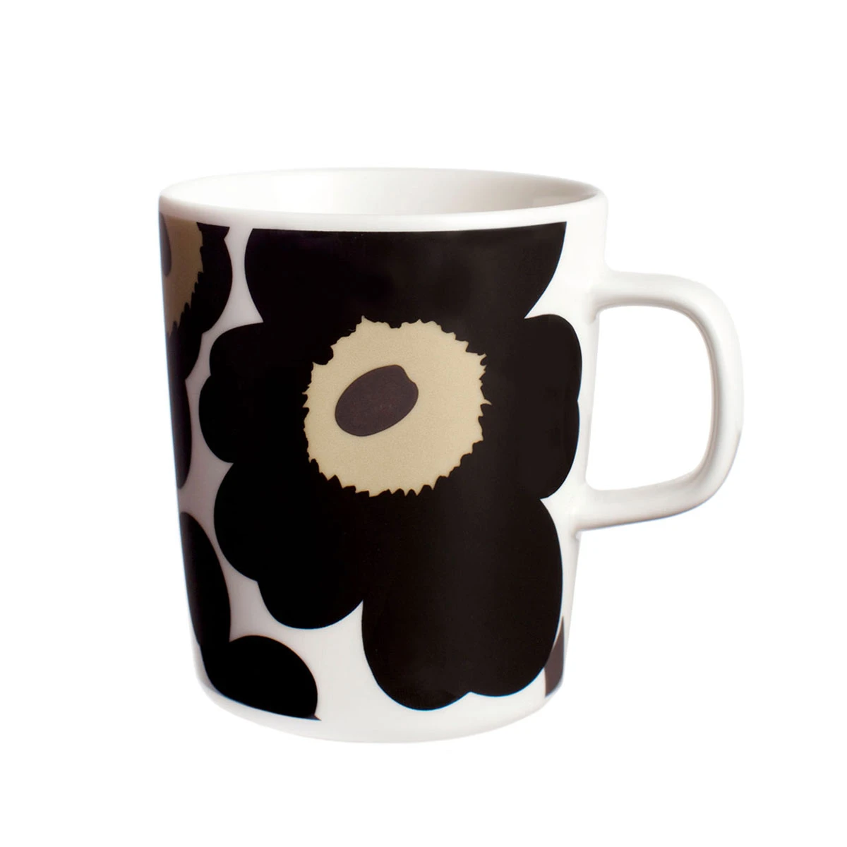 Perfect for hot chocolate, coffee and tea, the Marimekko Unikko Black Mug holds warm beverages and warm memories. Maija Isola’s iconic 1964 Unikko pattern has brought us joy for half a century thanks to its clean-lined, timeless beauty. Microwave, oven, freezer and dishwasher safe, it will be a practical and beautiful addition to your dinnerware collection.
