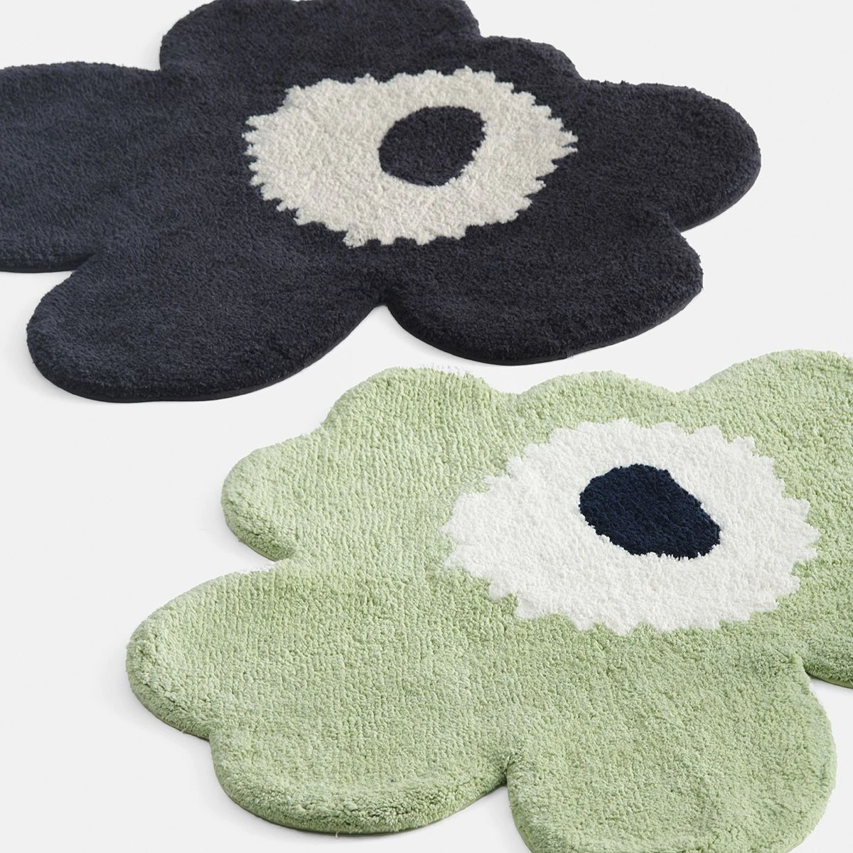 Let the bath bloom with the Marimekko Unikko Bath Mat. Hand-cut in the shape of Maija Isola’s famous poppy flower, this Marimekko rug will stun with its serene colorway and enlarged floral. The charcoal and off white colorway is just neutral enough for any bath interior, while the bloom remains bold and eye-catching. Made of 100% organic cotton terry, the machine-washable Marimekko bath mat will feel cozy and pleasant to walk upon with its tufted surface, plush texture and non-slip backing.