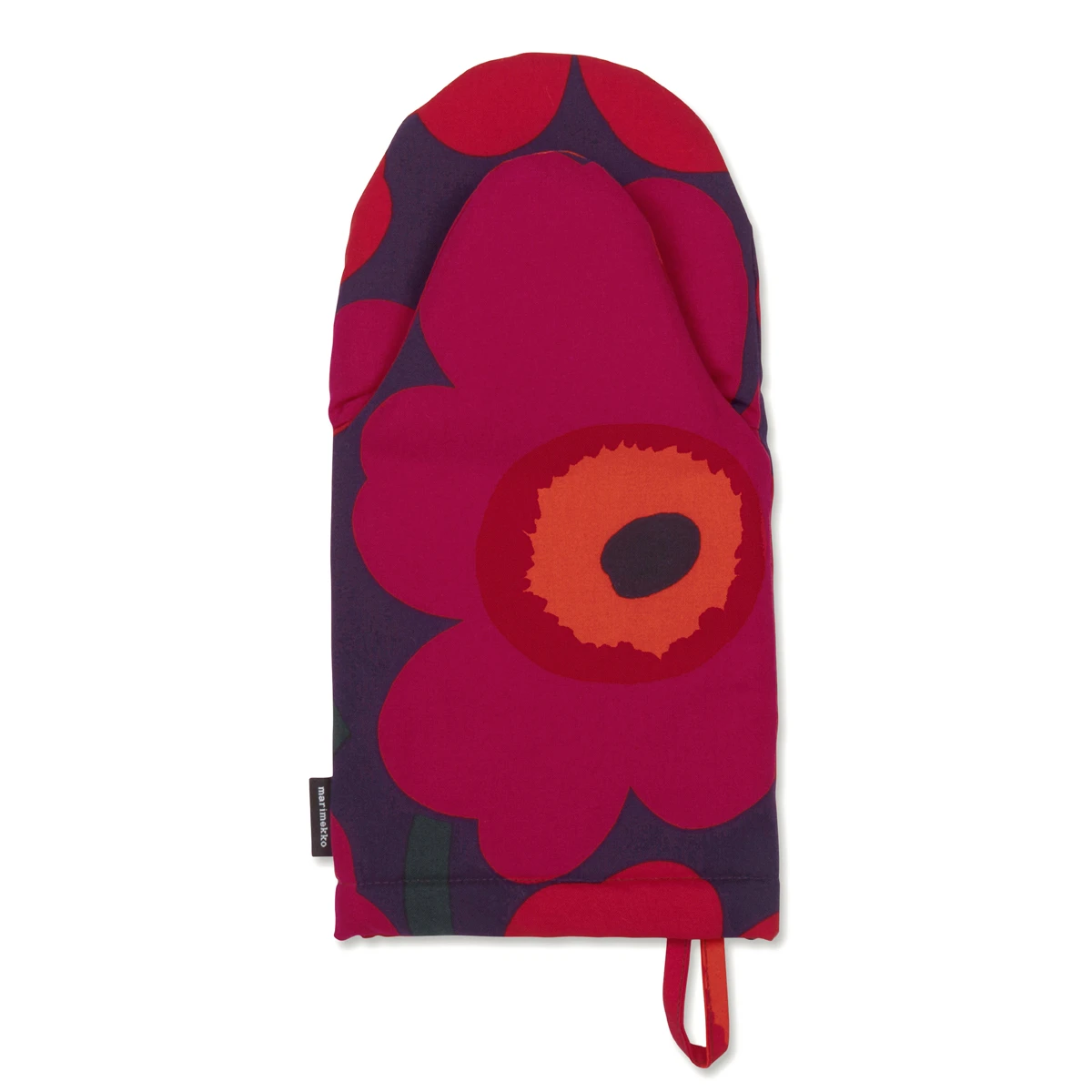 Maija Isola’s iconic Unikko gets dressed in rich red and plum for the festive season. This 100% cotton mitt features extra padding in the grip to keep you safe and comfortable while you bake up delicious memories. When it’s not in use, display the remarkable mitt by hanging it by its attached loop.