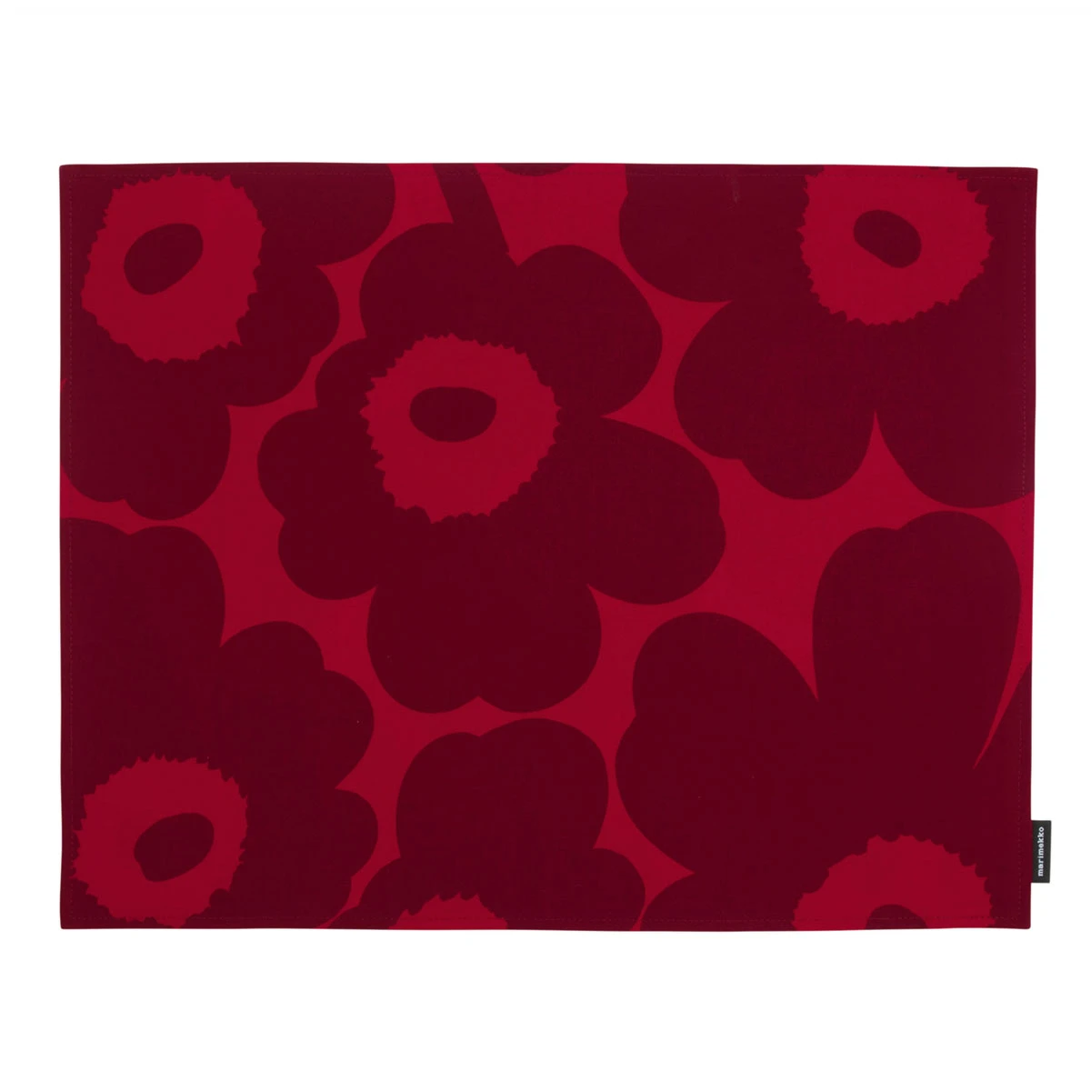 Set the scene for beautiful memories this holiday season with this festive placemat. Maija Isola’s famous poppies are rich and resonating in shades of maroon and red. Acrylic-coated cotton makes minor messes easily wiped clean, but also allows it to be machine washable for more major spills. It feels coarser than untreated cotton, but still feels like fabric and not like vinyl of earlier placemats. Plus, the eco-friendly treatment helps to avoid wrinkling when folded!