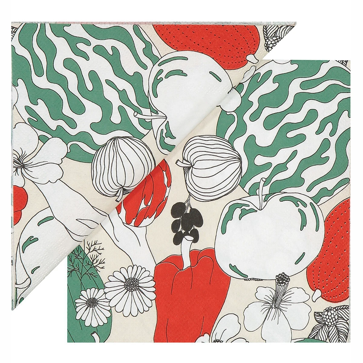 Called Vihannesmaa (Vegetable Garden), this print by Maija Isola is a tribute to the creations of Mother Nature. It highlights the range of shades, from pastel to vibrant hues, that produce flaunts as it grows – while celebrating the joys of growing your own food. The adorable design is fittingly featured on napkins for when you’re enjoying your own fresh food. Printed with non-toxic water-based colors on recycled tissue, these 100% biodegradable napkins are a more eco-friendly way to enjoy the convenience of disposable napkins. The pack of 20 3-ply paper napkins is the perfect way to bring personality to a party or fun to everyday dining.